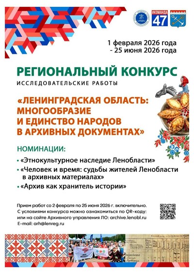 Приглашаем к участию в конкурсе «Ленинградская область: многообразие и единство народов в архивных документах» - 02.03.2026